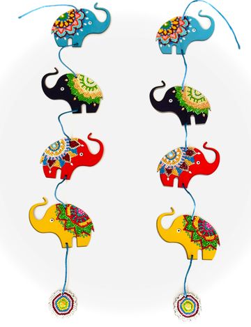 Featuring a vibrant lineup of elephants in bright festive hues, each one adorned with intricate diamond painting artistry, this toran adds a joyful splash of color to your home and brings in positive energy and harmony.