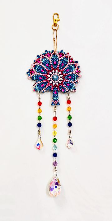 Embrace the timeless symbolism of resilience, positivity & uplifting energy with this handcrafted charm in shimmering vibrant hues of blue, pink & whites.